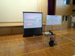 教頭先生がみんなが飽きないようにトムとジェリーをスクリーンで流してくださいました。