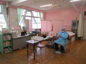 まだコロナの影響で、校内ではみんなで並んで歯磨きができません。